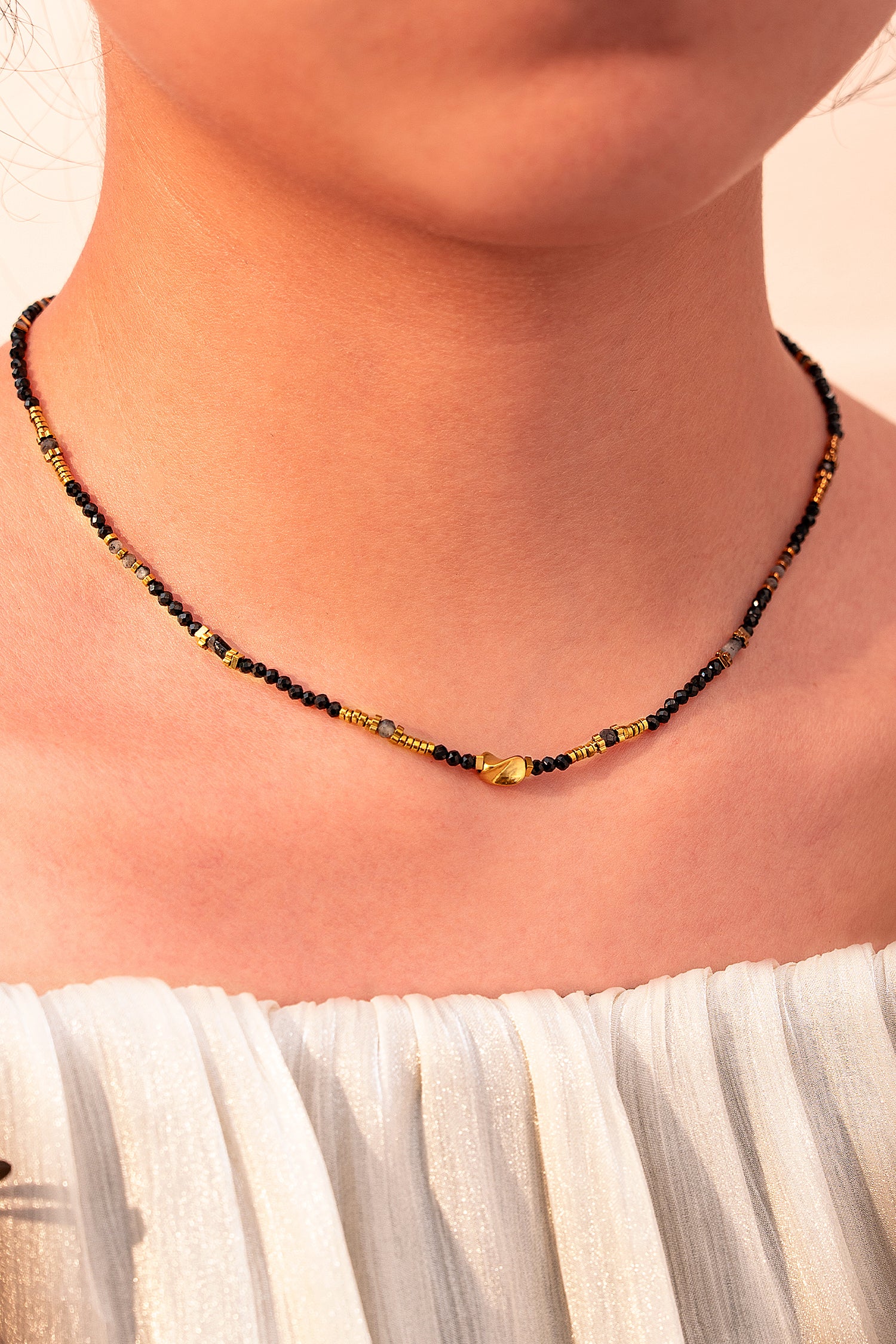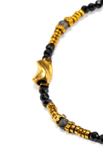 A sharp take on everyday elegance. The Cassis Necklace features black beading paired with radiant gold for a high-contrast finish that commands attention. Sleek, sculptural, and undeniably cool — it's the piece you’ll reach for when less is more.