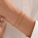 Refined and fluid, the Flow Bracelet features a delicately slinky chain that moves with you. Available in two subtle thicknesses, it’s designed to stack effortlessly or wear solo for a clean, minimalist finish. Finished in polished gold/silver with a barely-there feel, it brings a graceful touch to any style.